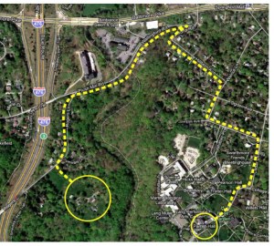 The wild ride described in the letter is difficult to picture. To travel from Crumwald to Parrish ‘as the crow flies’ is a short trip, but the terrain and the creek would have made it impossible with a cow in tow. Did they really drag (or ride) that poor cow out Rogers to Plush Mill, up Victoria and Hillborn to Walnut, then Elm, then Cedar and then through the College entrance?